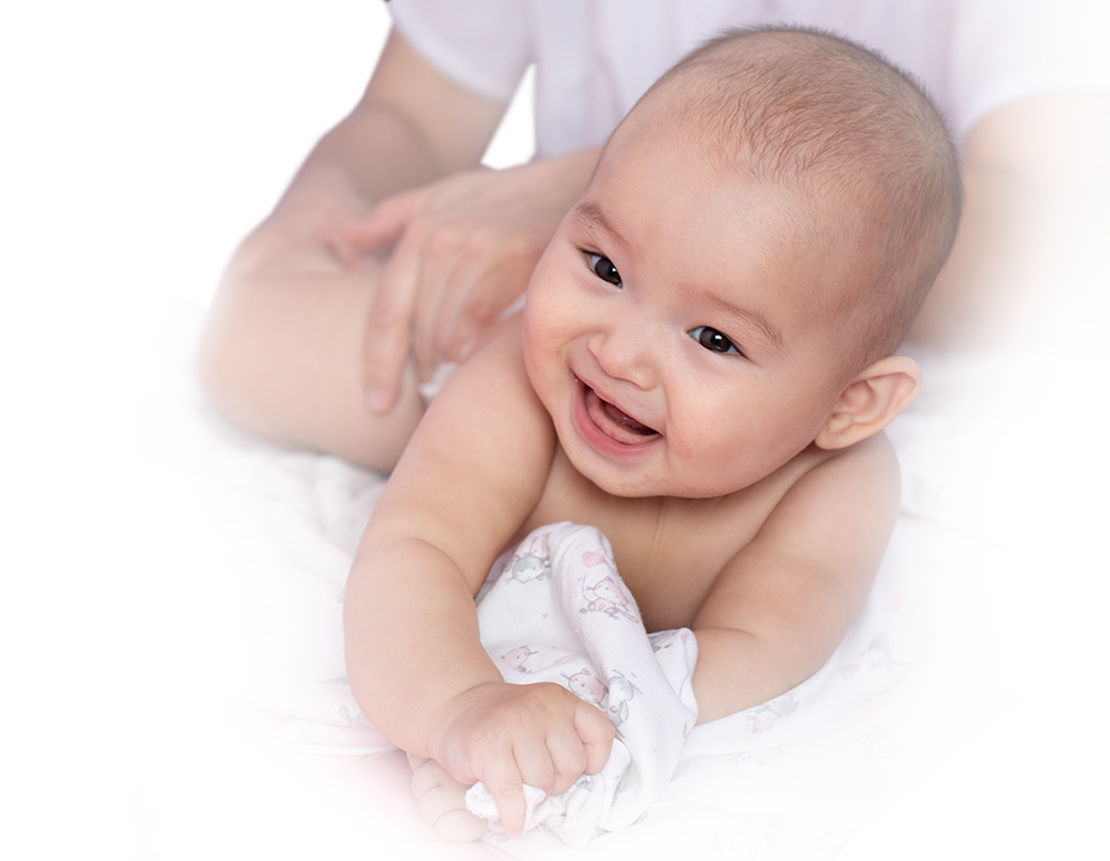 - Асимметрию ягодичных, паховых и бедренных складочек. (Положите малыша на спину или на животик, аккуратно выпрямите его ножки и приглядитесь к тому, как расположены складки кожи у него в паху, на бедрах и под попой — все складки должны быть одинаковыми и симметричными)
